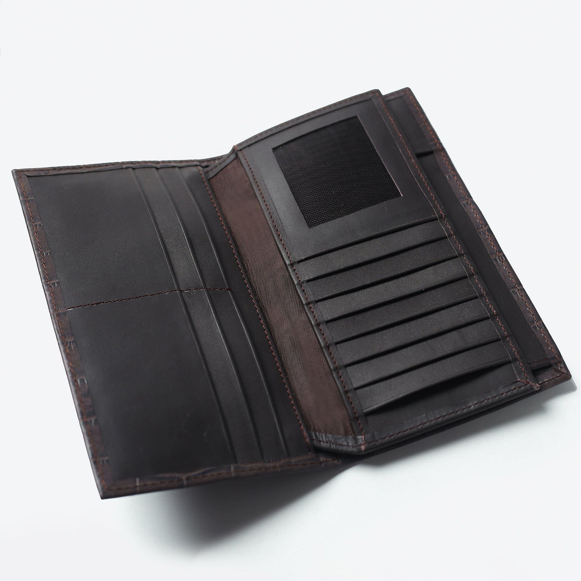 This Croco Brown Deluxe Long Billfold is impeccably made from timeless leather with minimal detailing, so the sleek, seamless construction takes focus. The perfect size to slip into your coat’s pocket, it has sufficient slots to keep your notes and cards organized.